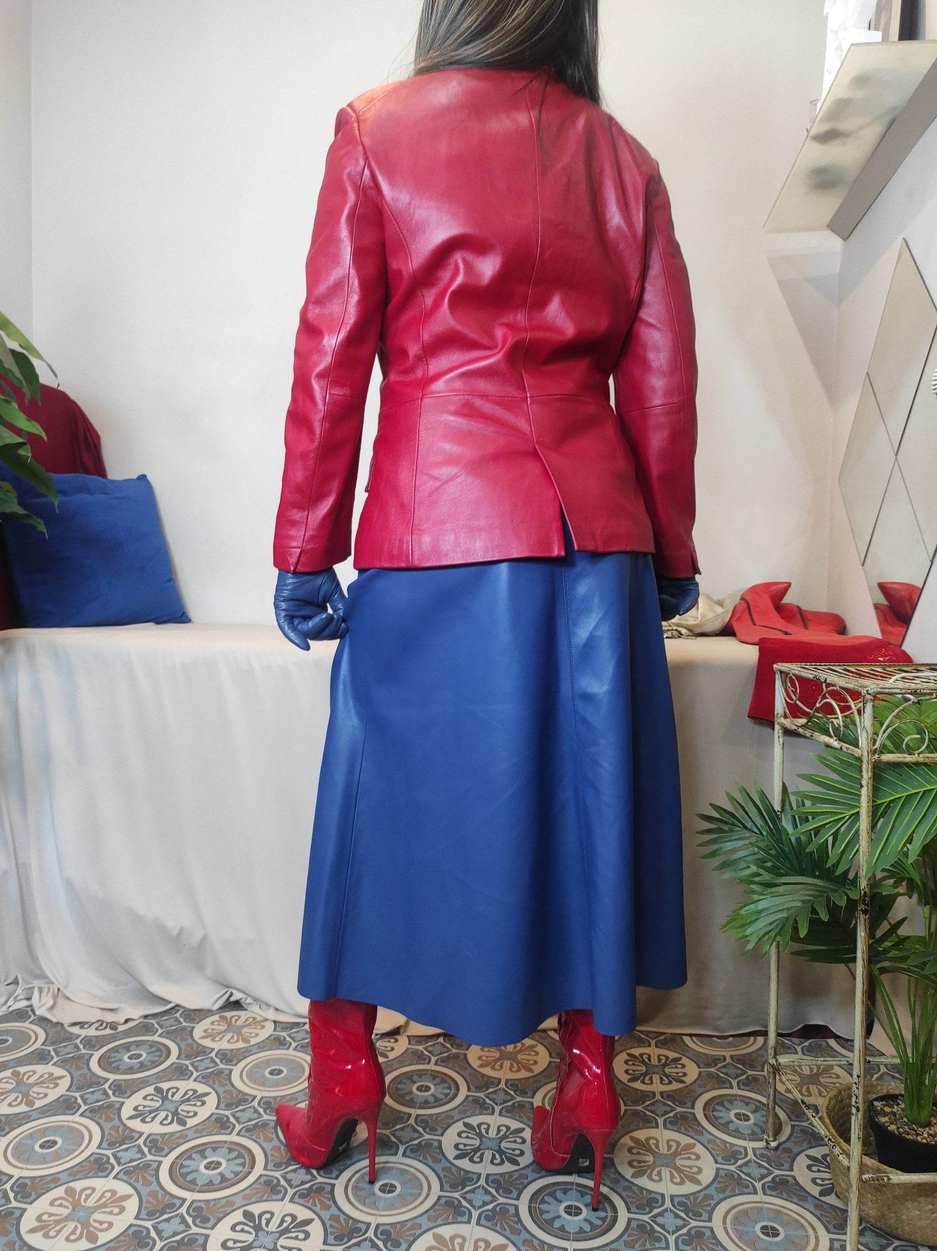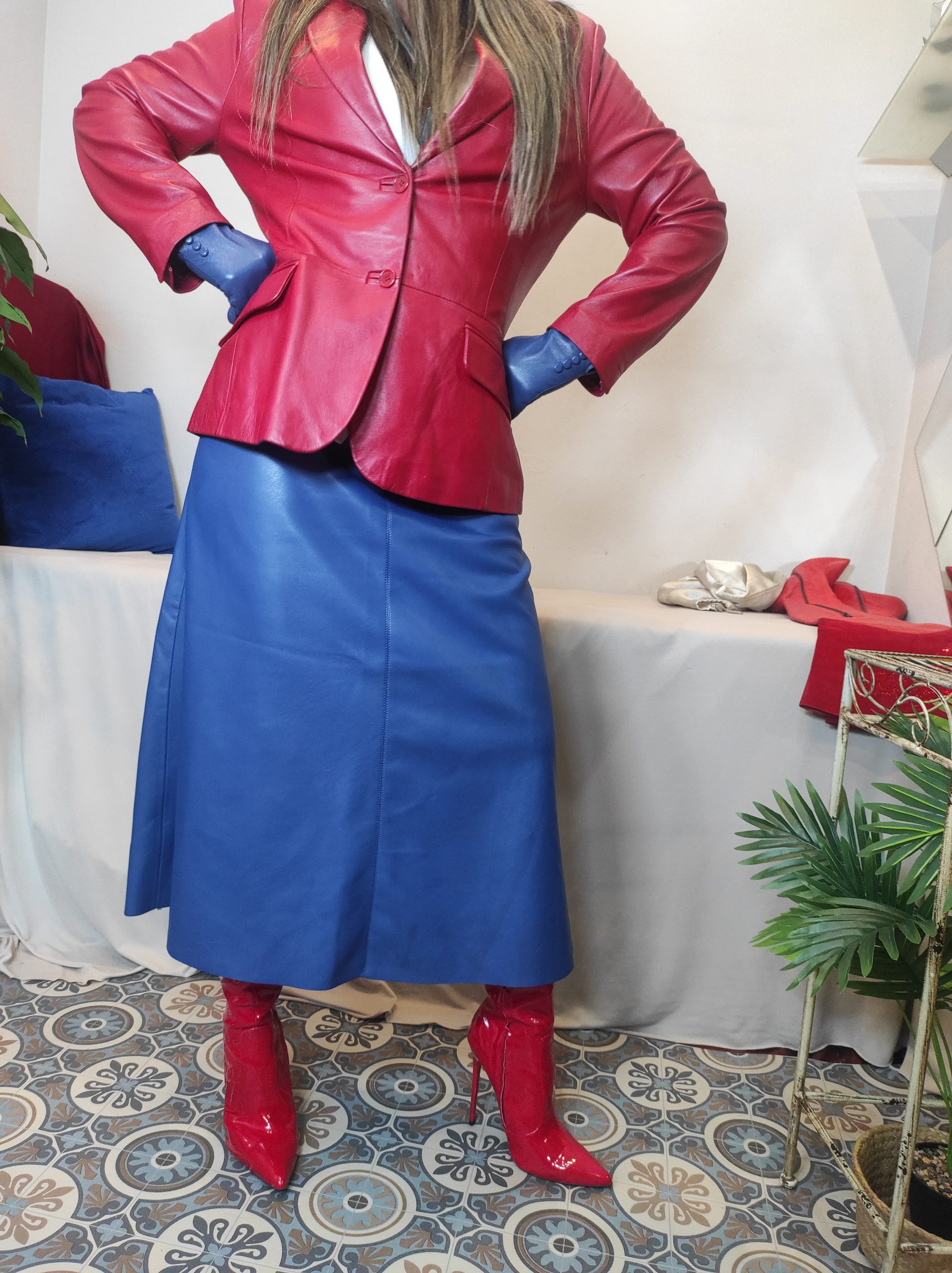Falda en cuero auténtico talla 40, talla grande. Bolsillos posteriores y delanteros