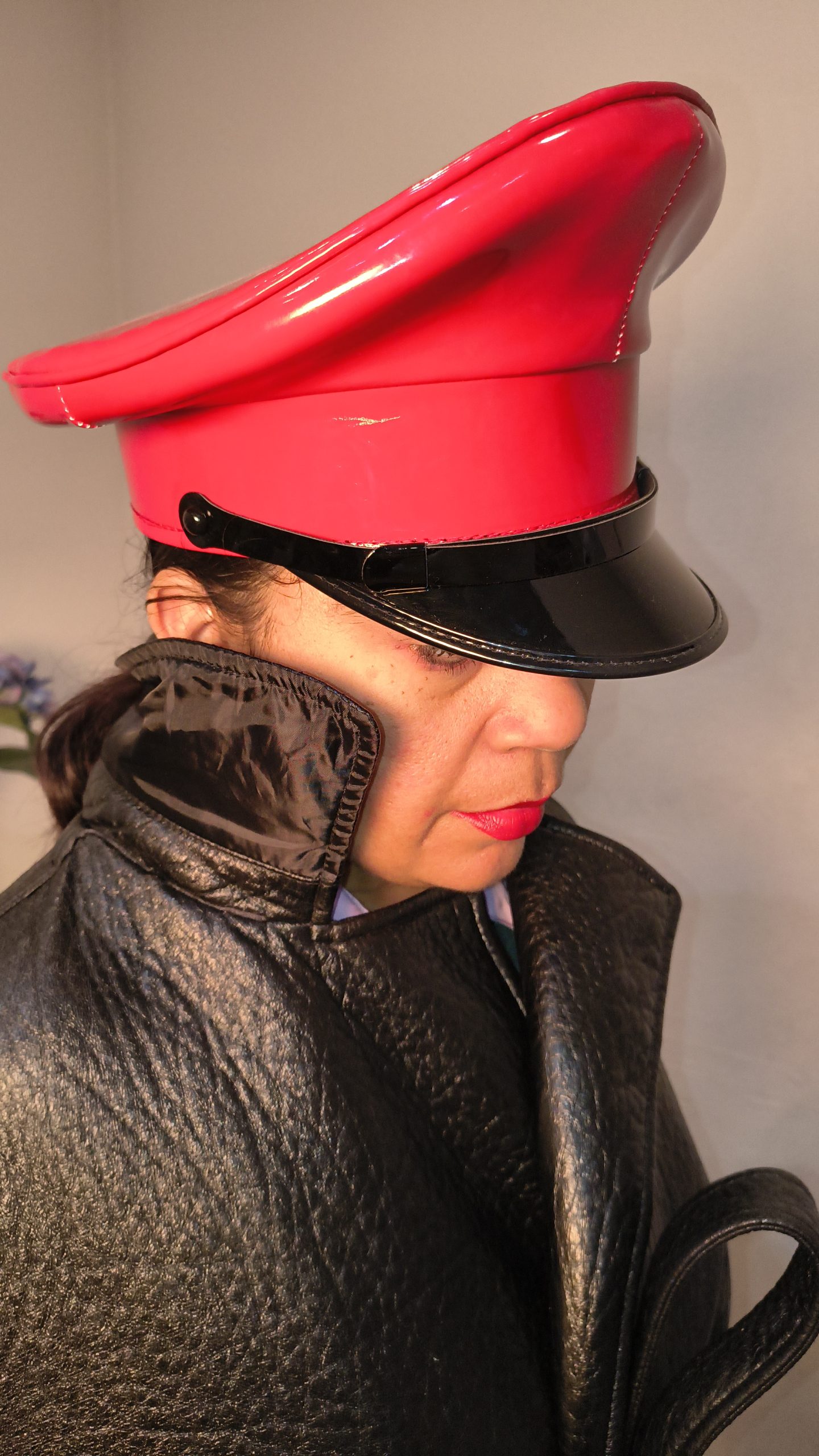 Leather skirt closes with buttons . Pockets on the front and on the back.