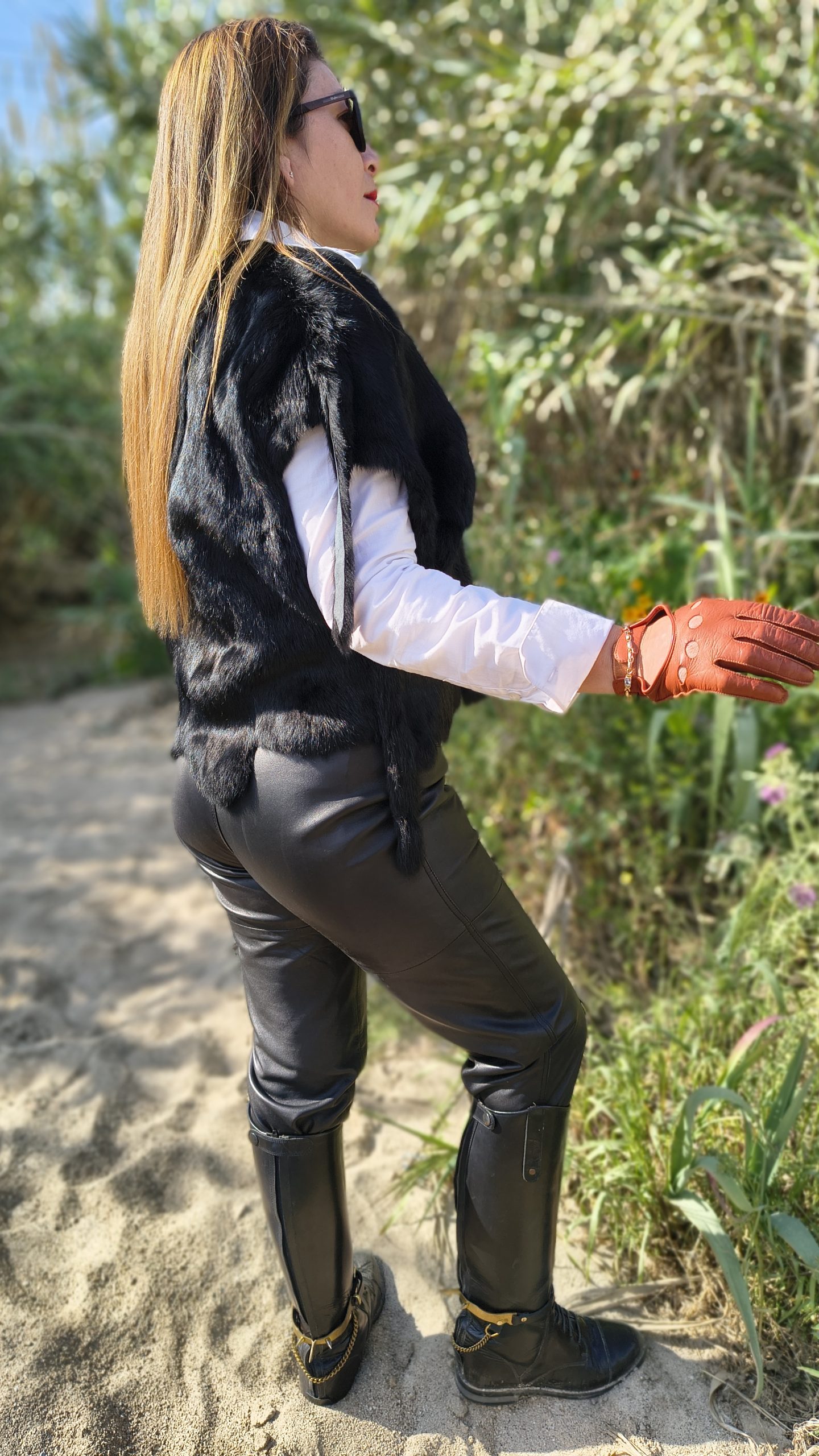 Leather pants / jeans with lace on the side. Thick leather moto biker style